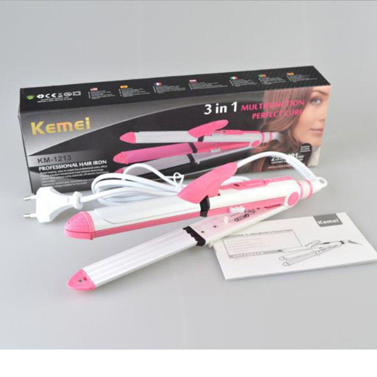 • Kemei KM 1213 3 in 1 Professional Hair Straightener Cum Curler Iron